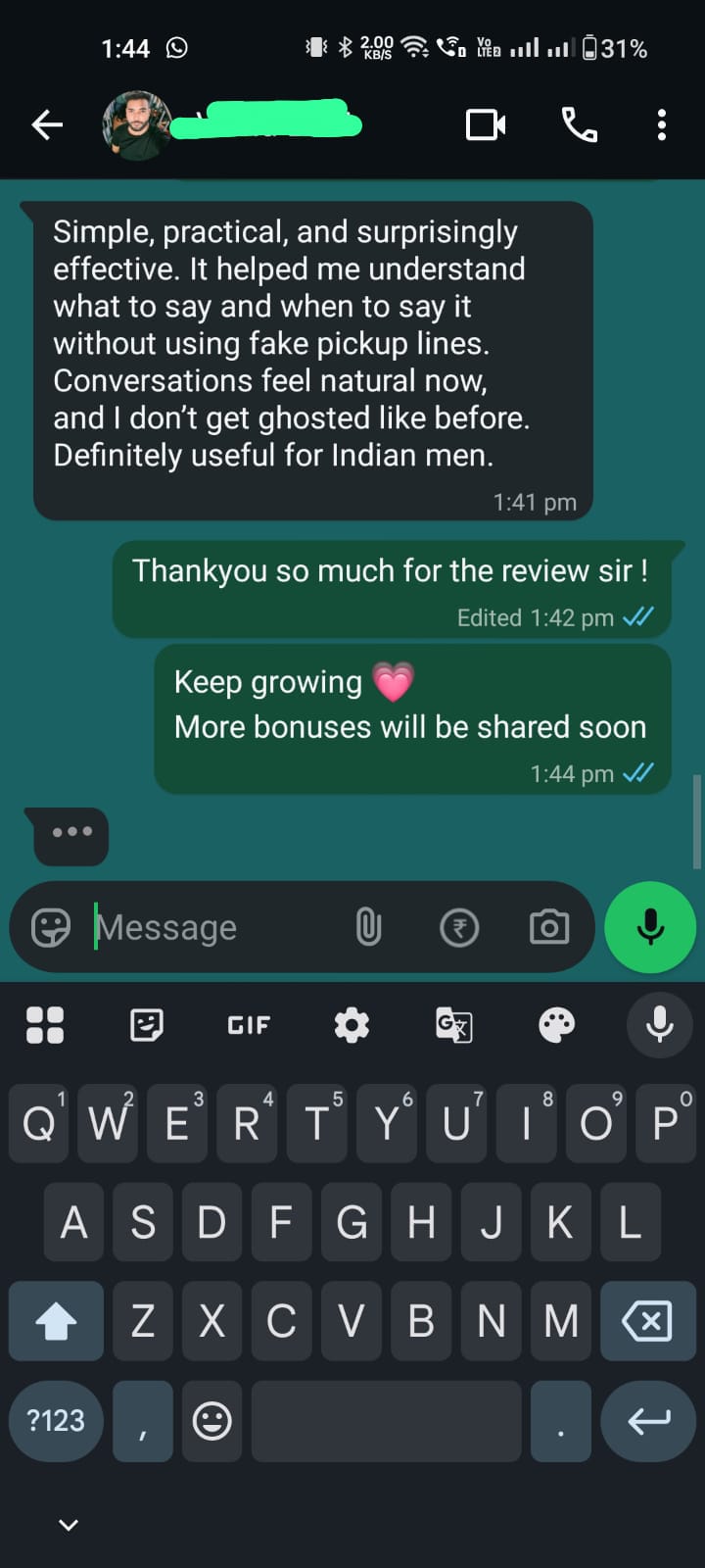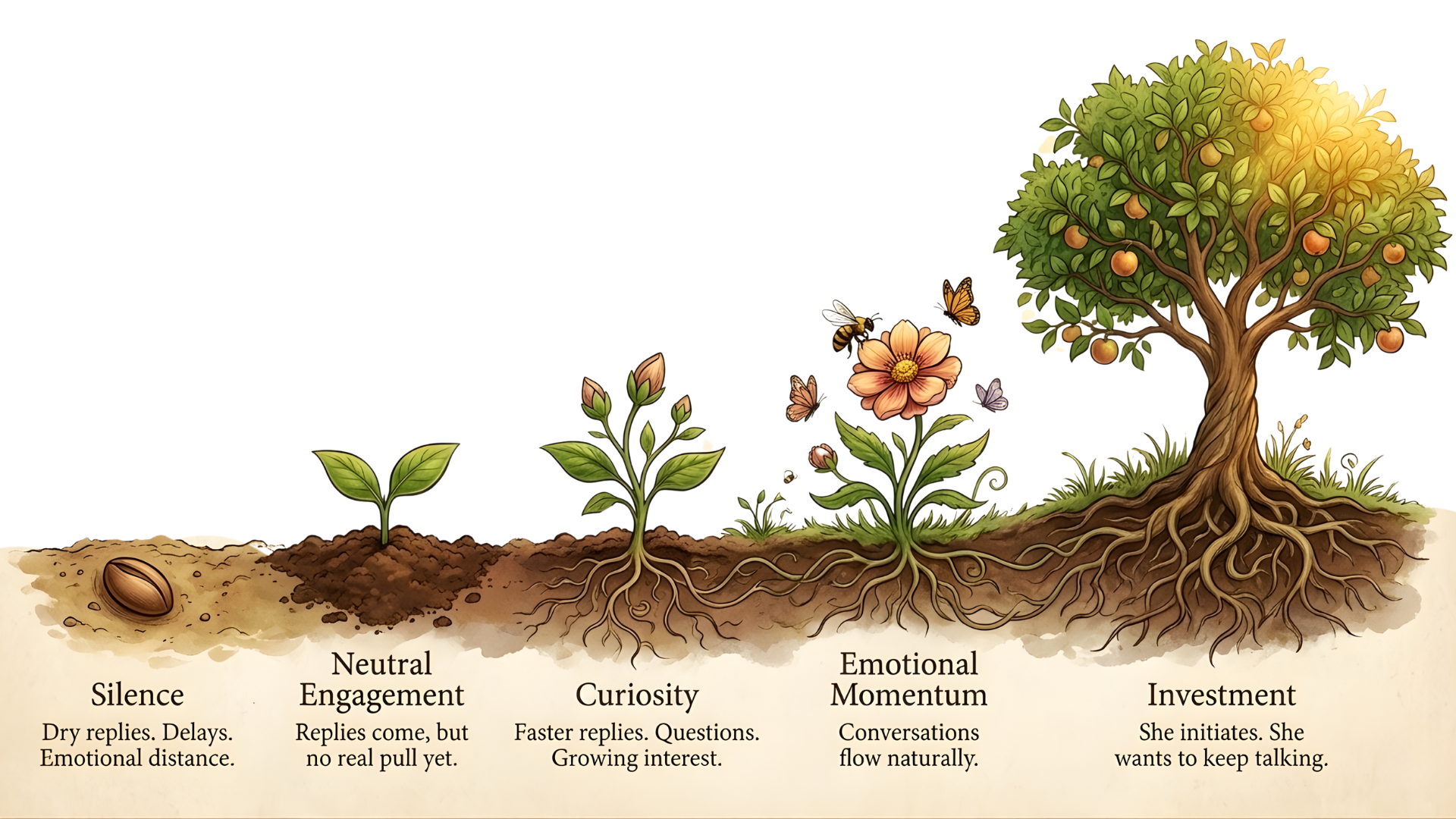 Keeps her emotionally engaged by avoiding predictable reply patterns — so interest stays alive.